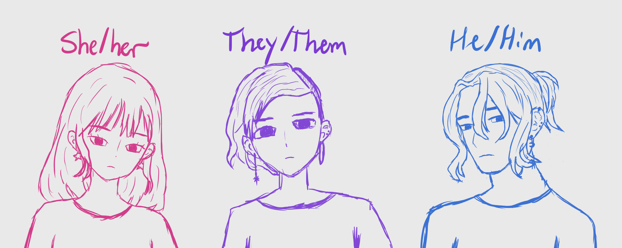 she/her, they/them, he/him