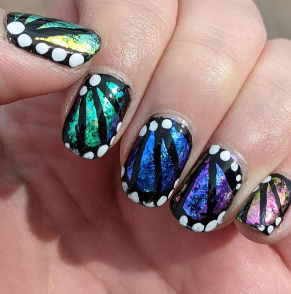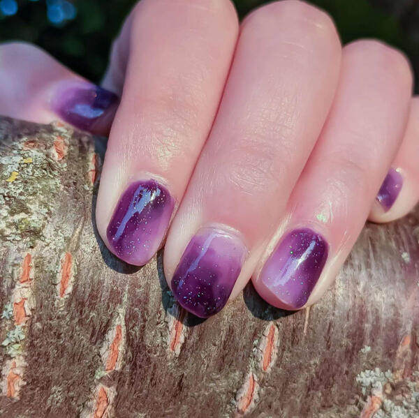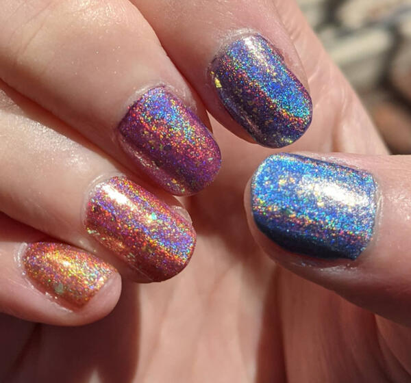 Usually sheer, jelly, or pastel polishes; sometimes will have nail art