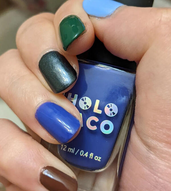 Mostly solid colours without much holo/glitter; never has nail art